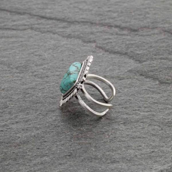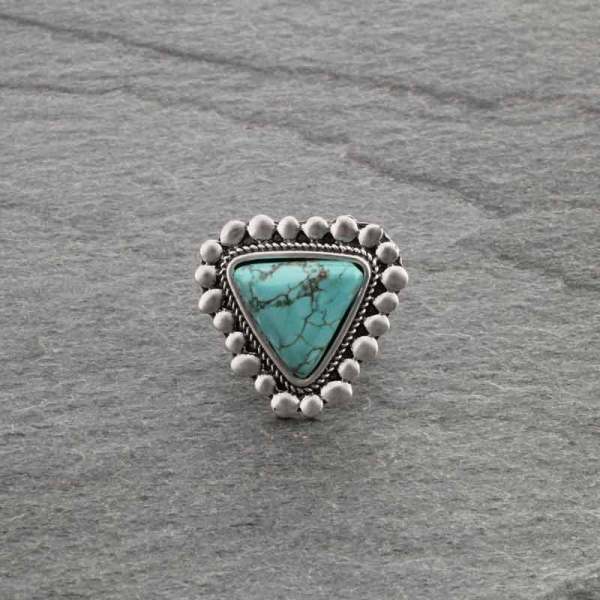 Studded Silver Triangle Tribal Turquoise Stone Ring