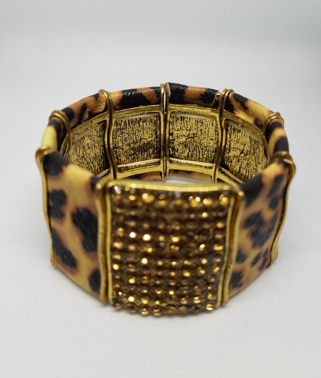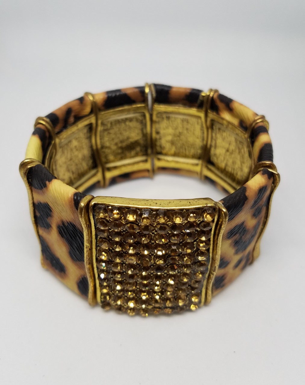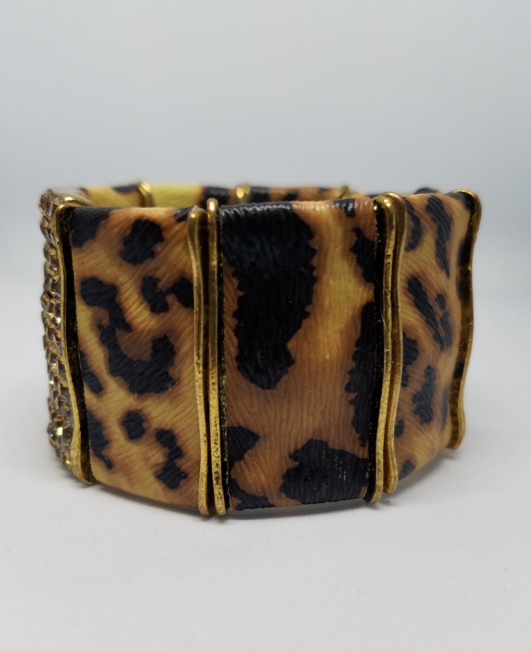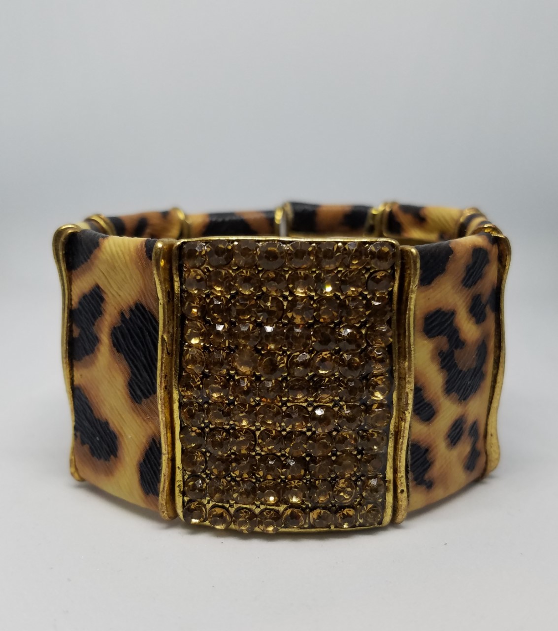 Leopard Print Crystal Stretch Vegan Leather Braceet