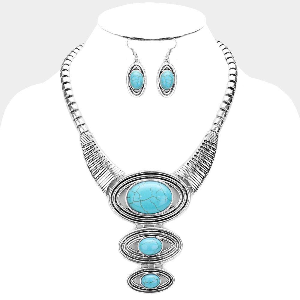Silver Turquoise Layered Stone Necklace