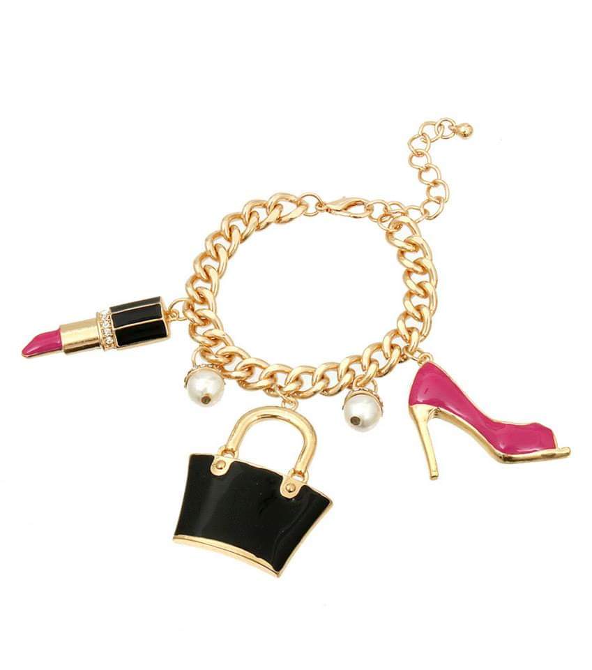 Gold Pink Girly Girl Charm Bracelet Earings Ring set