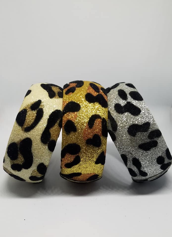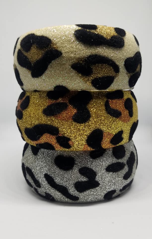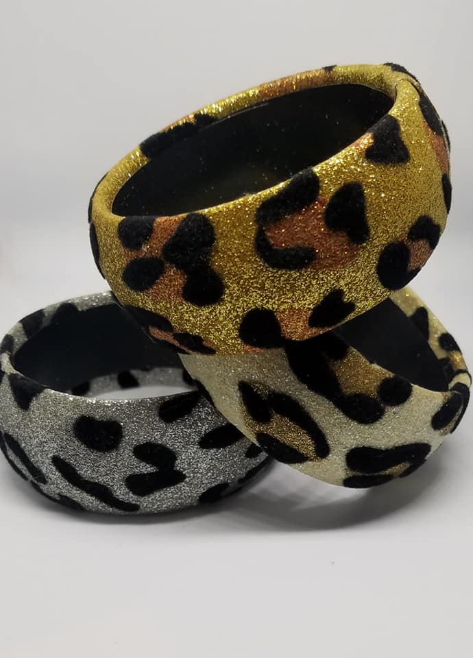 3pc. Chunky Animal Print Leopard Fabric Sparkle Bangles