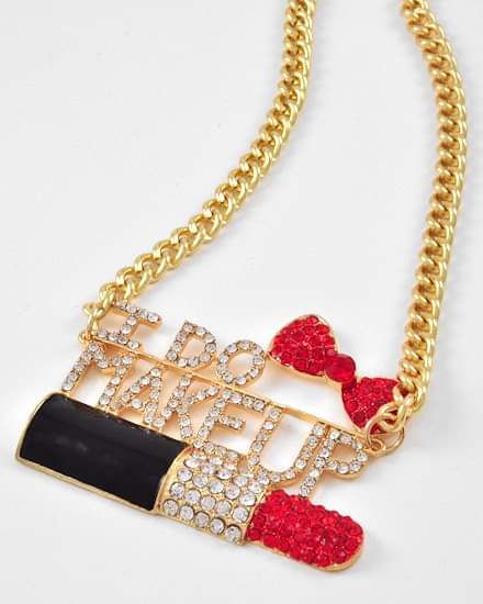 Gold Red Crystal I DO NAILS Pendant Necklace