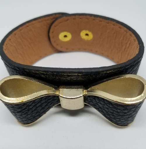 Black Vegan Leather Gold Trim BOW bracelet