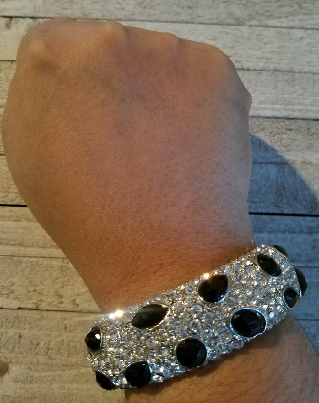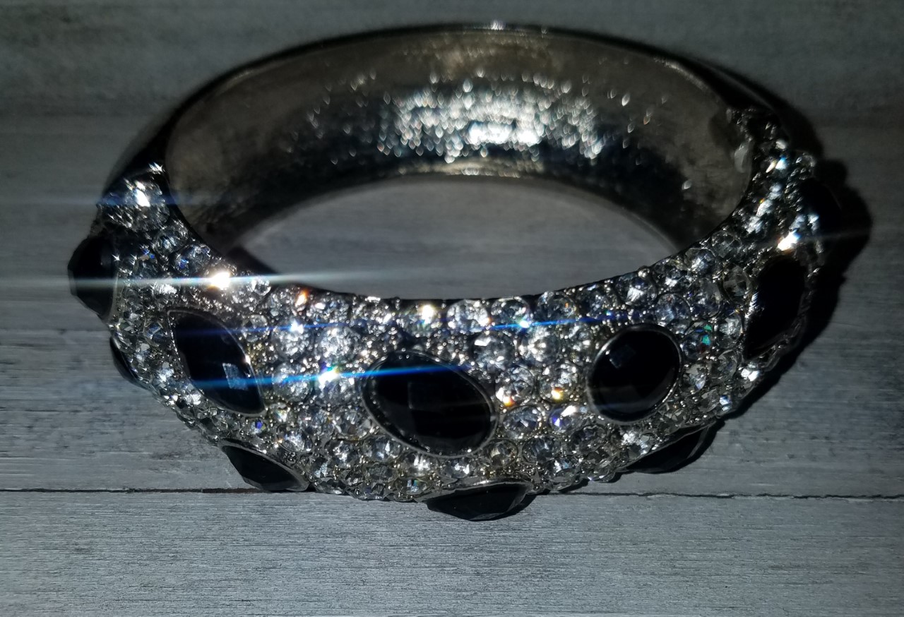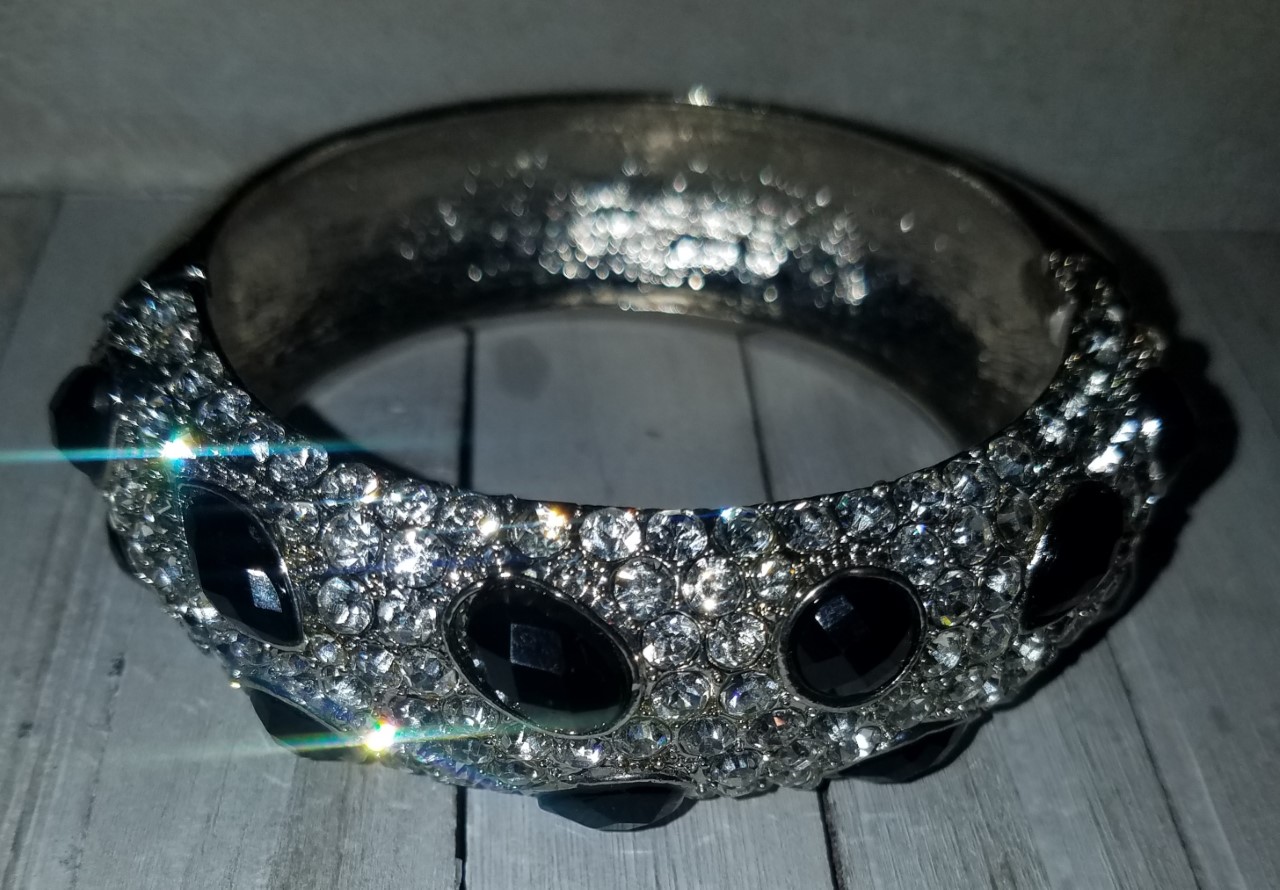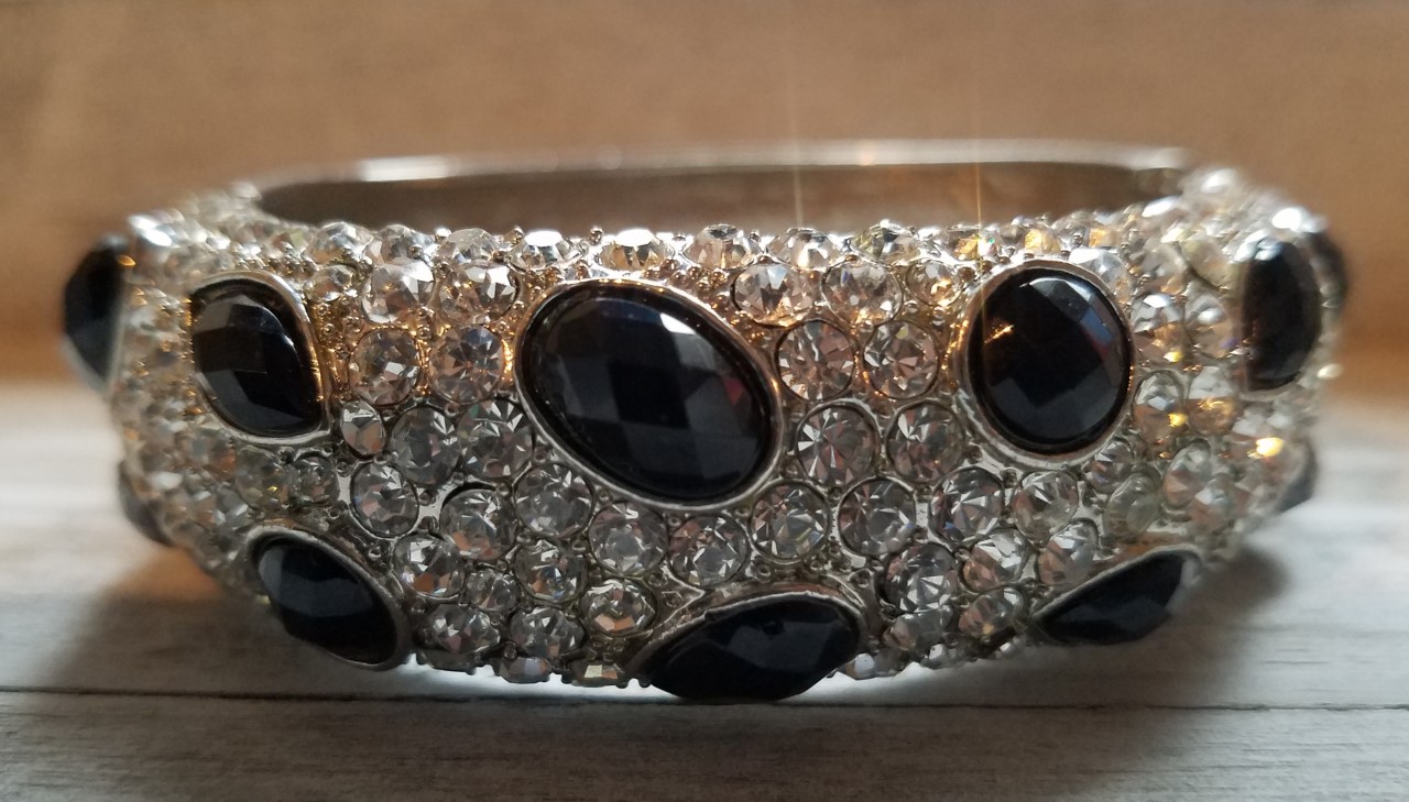 Silver Crystal Gem Hinged Bracelet