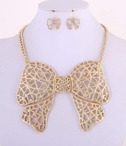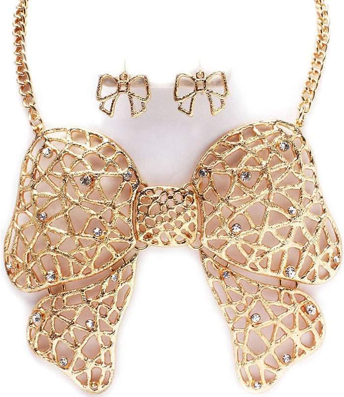 Gold Jumbo Cut Out Ribbon BOW Necklace