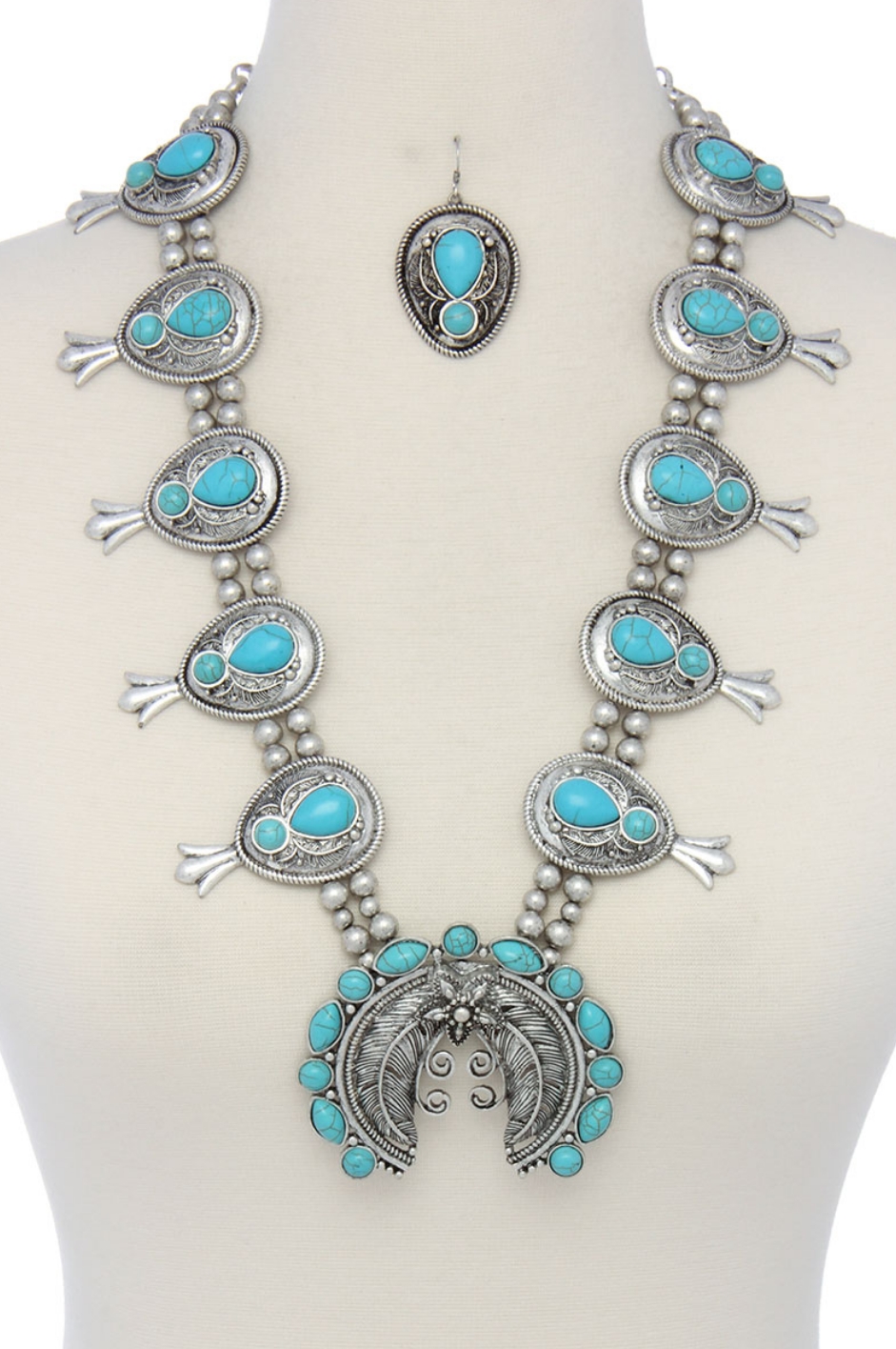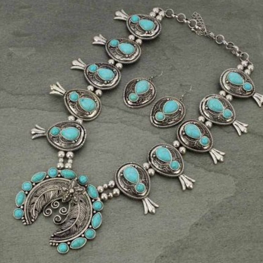 Beautiful Faux Turquoise Squash Blossom Necklace for less.