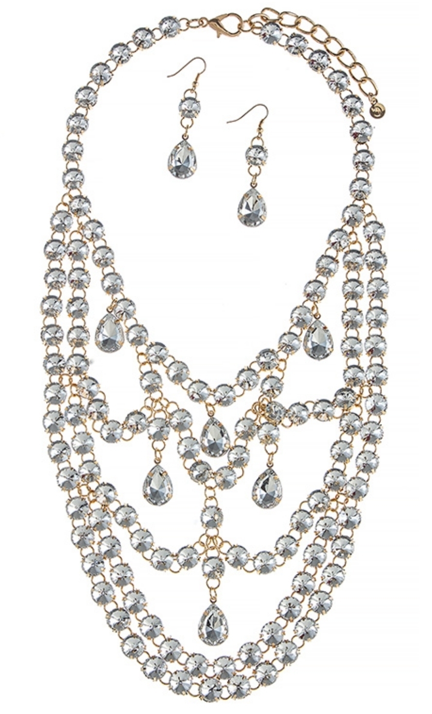 Gold Crystal Glass Draping Statement Necklace