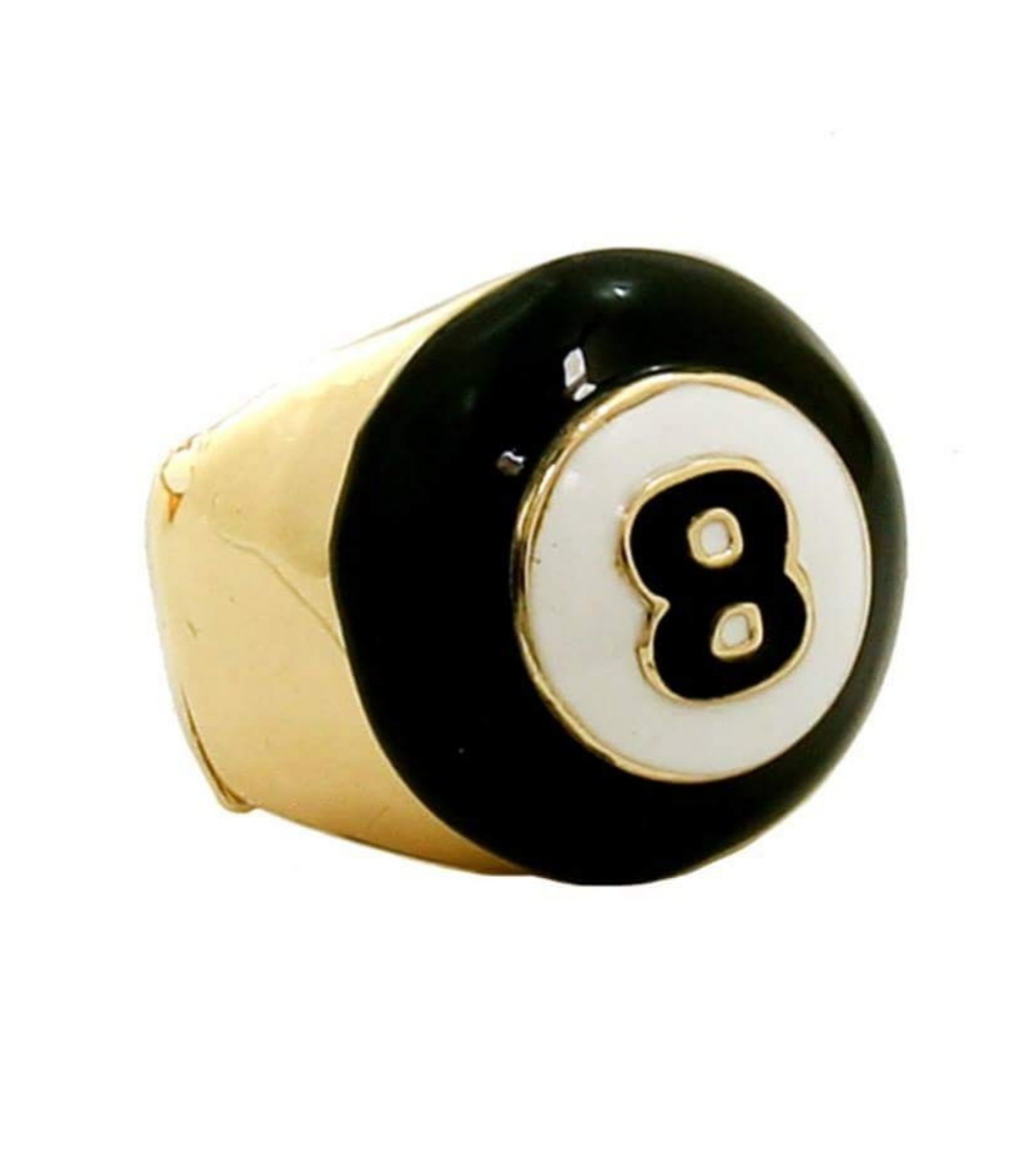 Old School Gold Black 8 ball Stretch ring