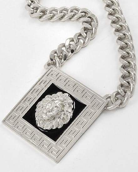 Vintage Square Greek Key LION Head Necklace