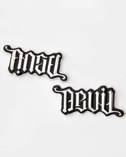 Matching Silver Black DEVIL/ANGEL Ambigram Word Stud Earrings