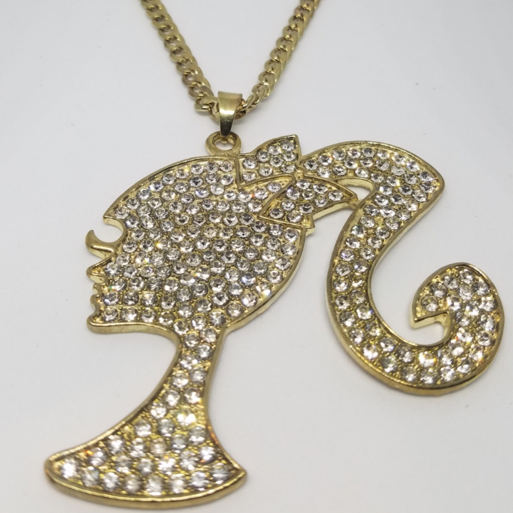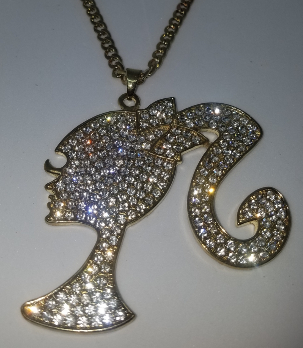 Gold Crystal Girly Girl Silhouette Necklace
