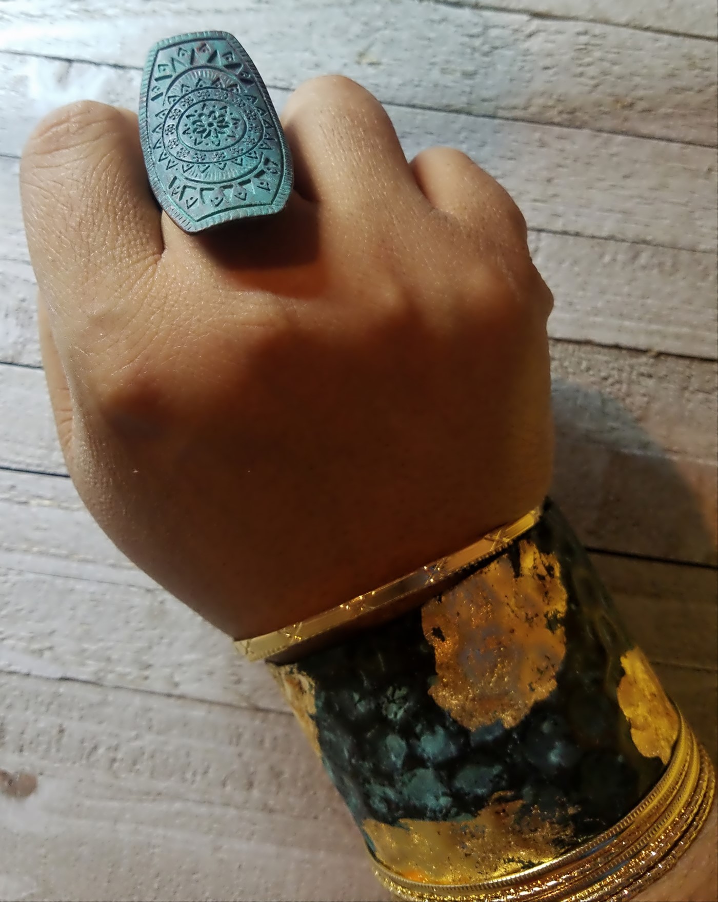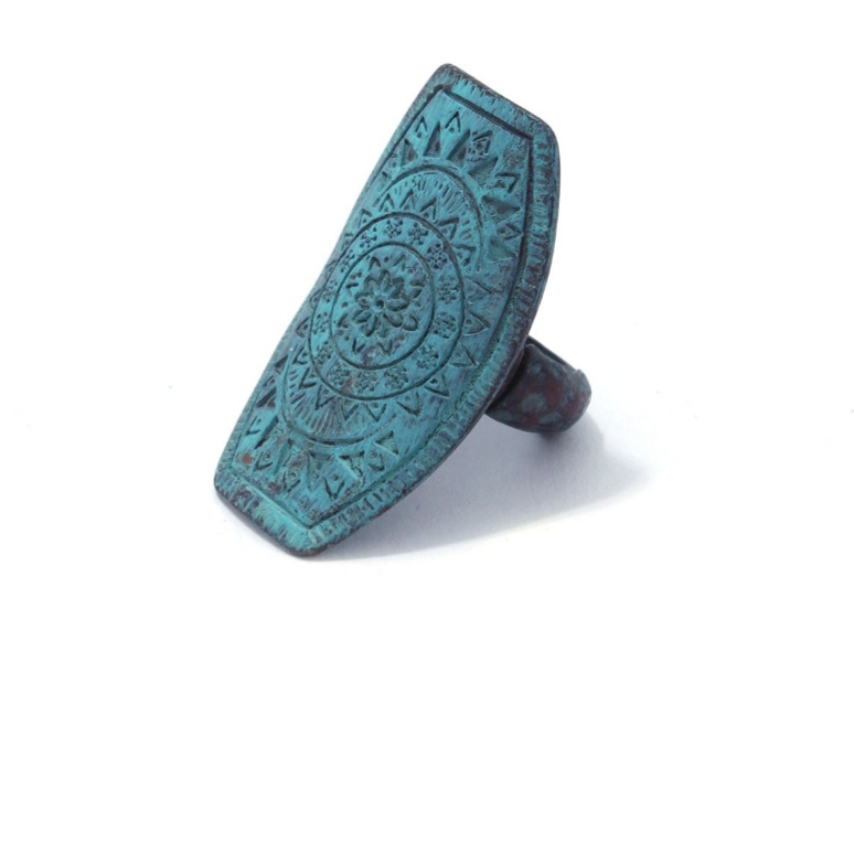 Green Patina Medallion Stretch Ring