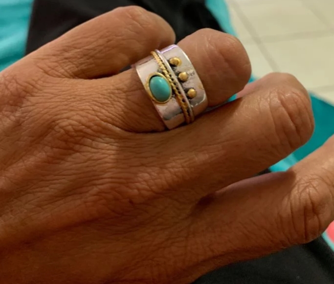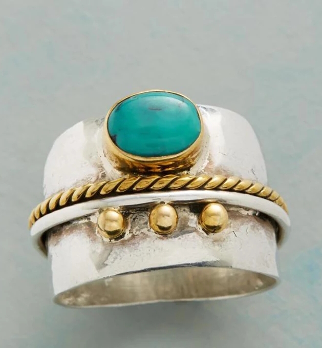 Tribal Two Tone Silver Turquoise Stone Ring Size 8