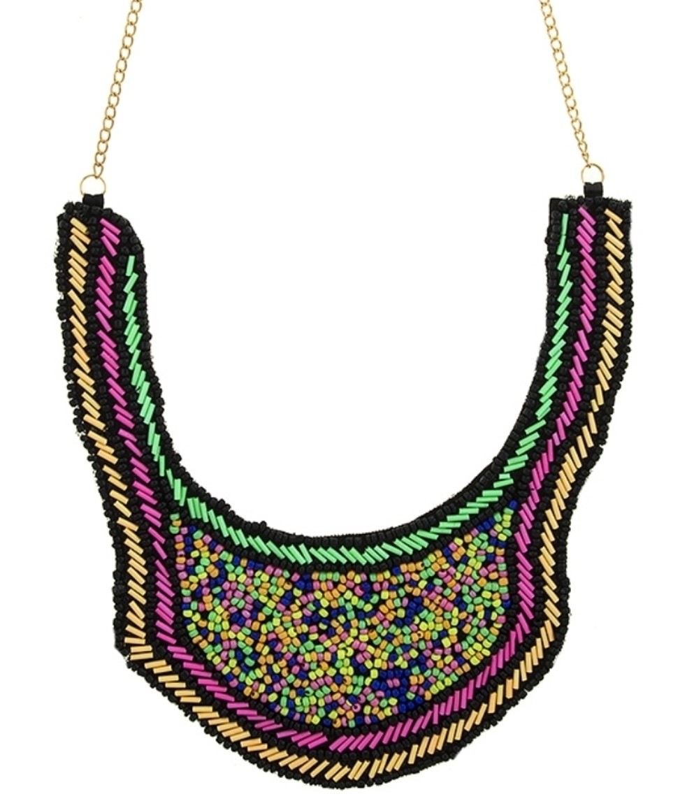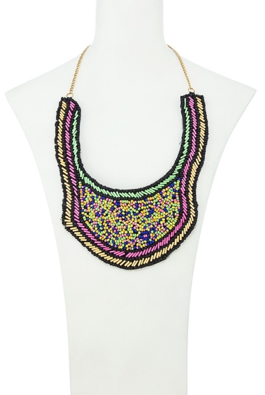 Neon Colorful Beaded Bib Necklace