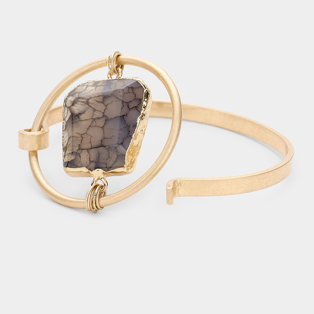 Gold Grey Stone Charm Bracelet