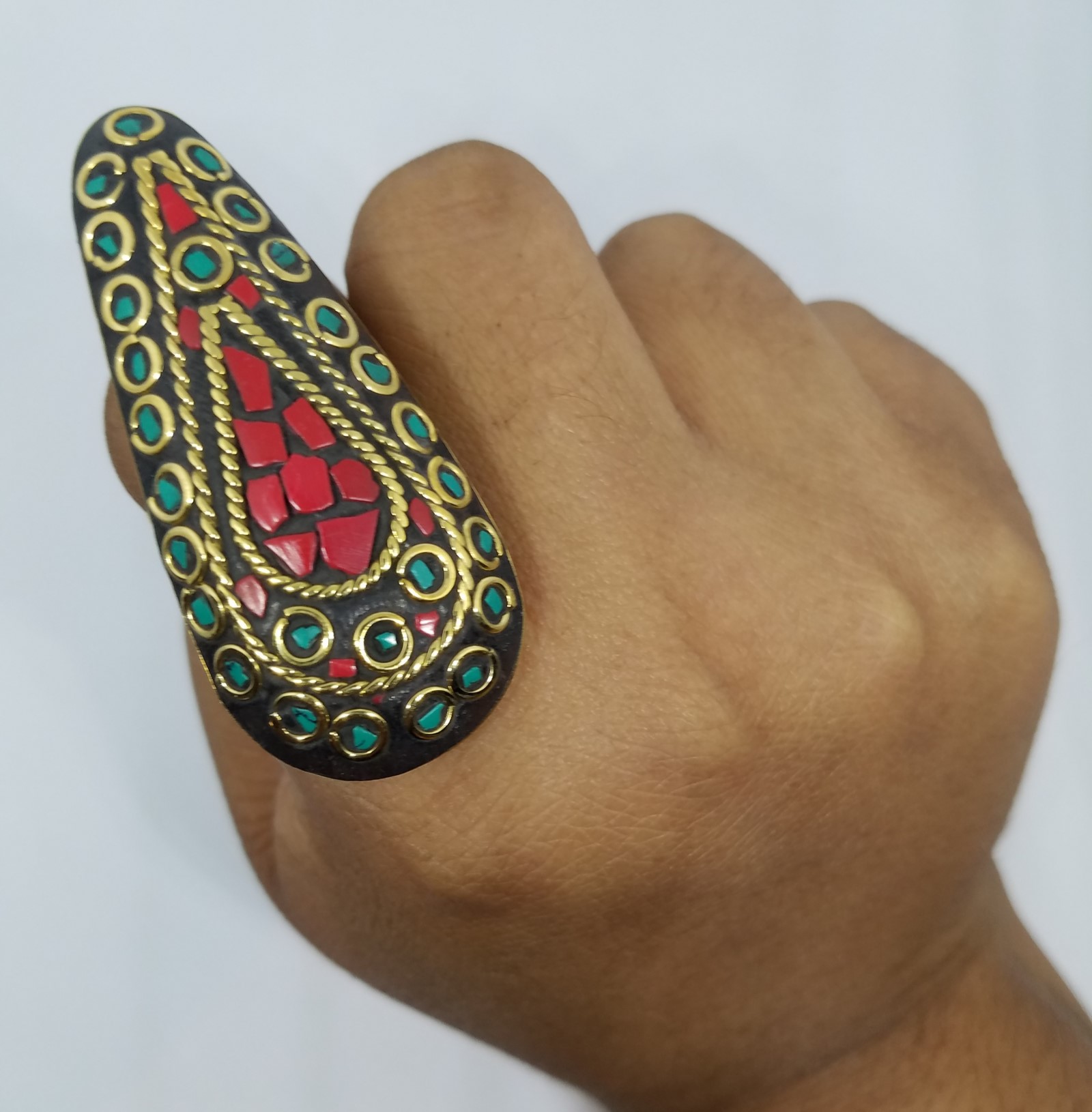 Long Mosaic Tile Stone Tear Drop Brass Rings