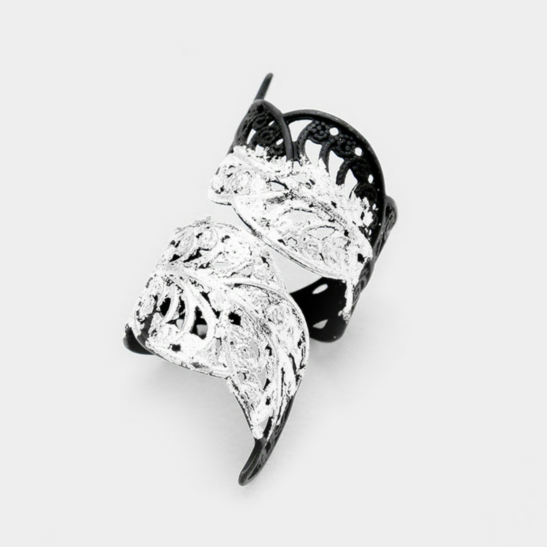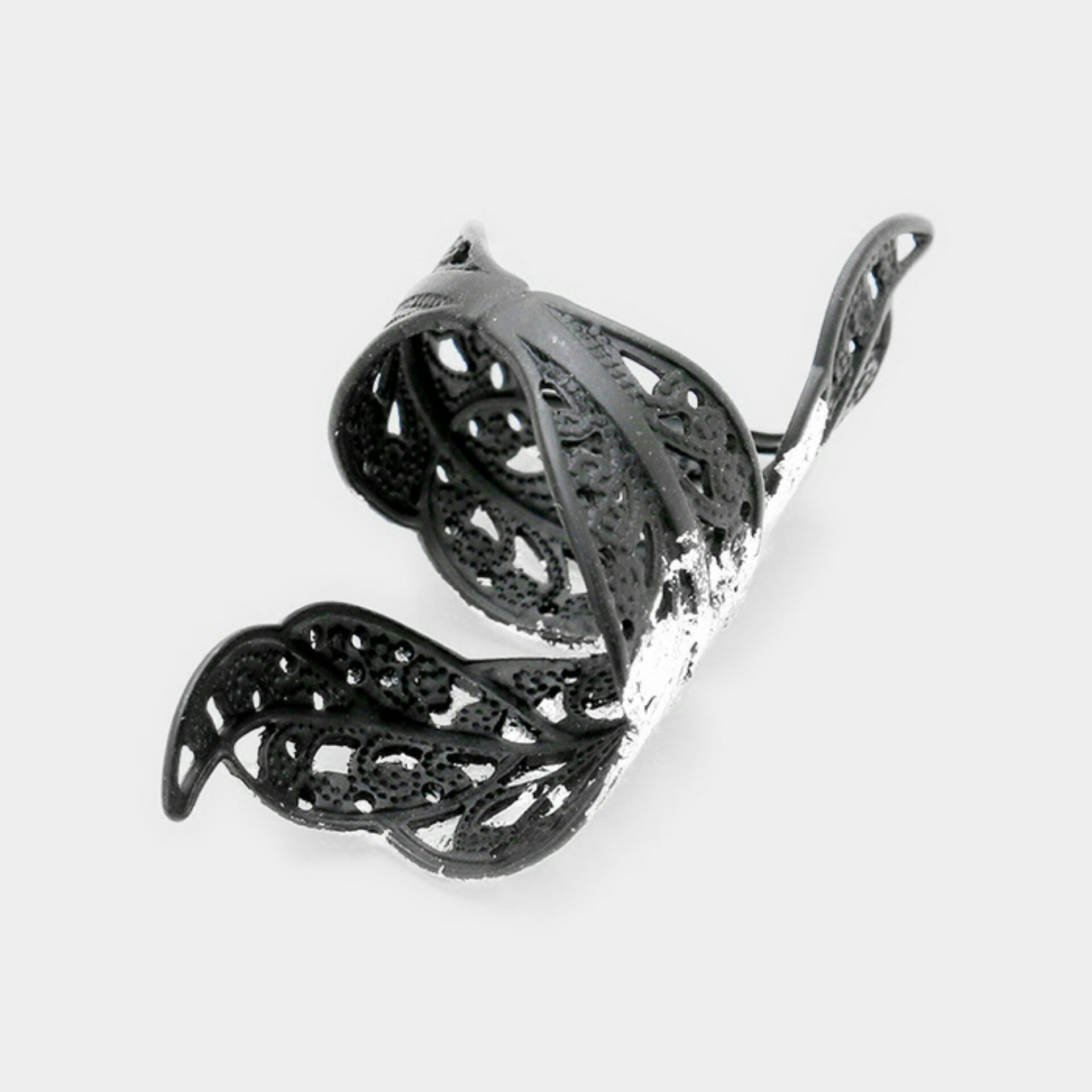 Black Silver Dipped Wrap Around Leaf Midi Ring