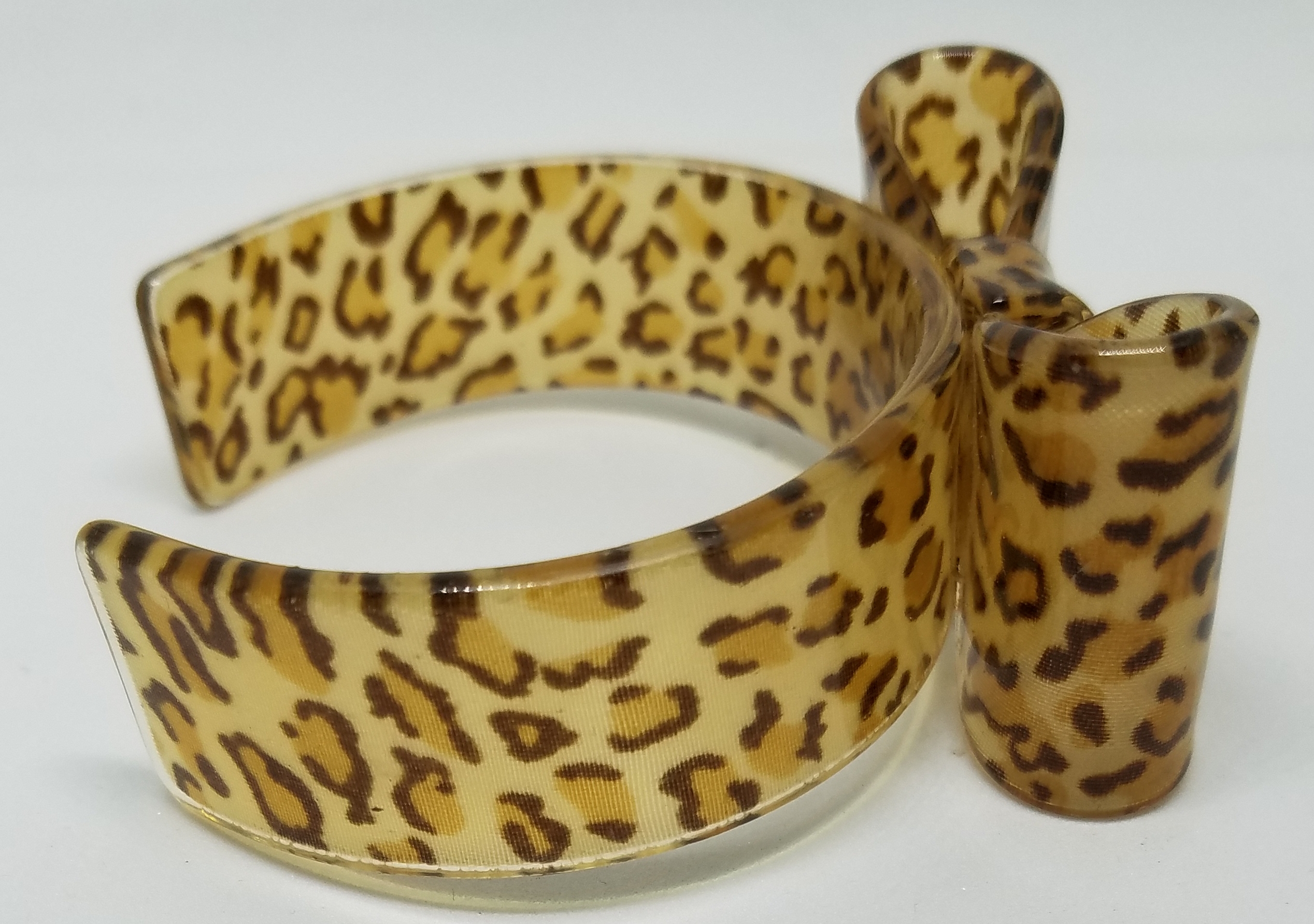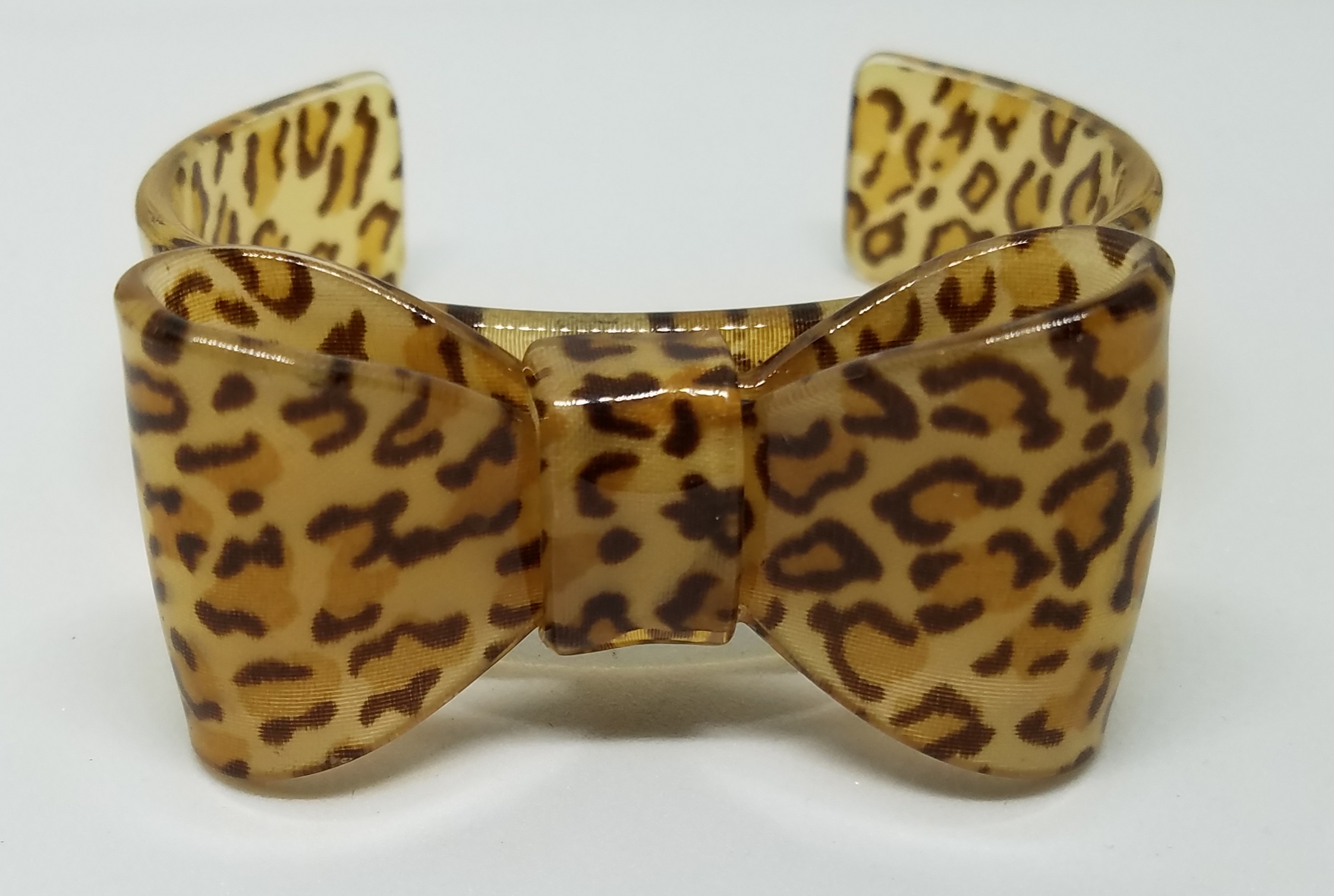 Retro Leopard Print Resin BOW Cuff Bracelet