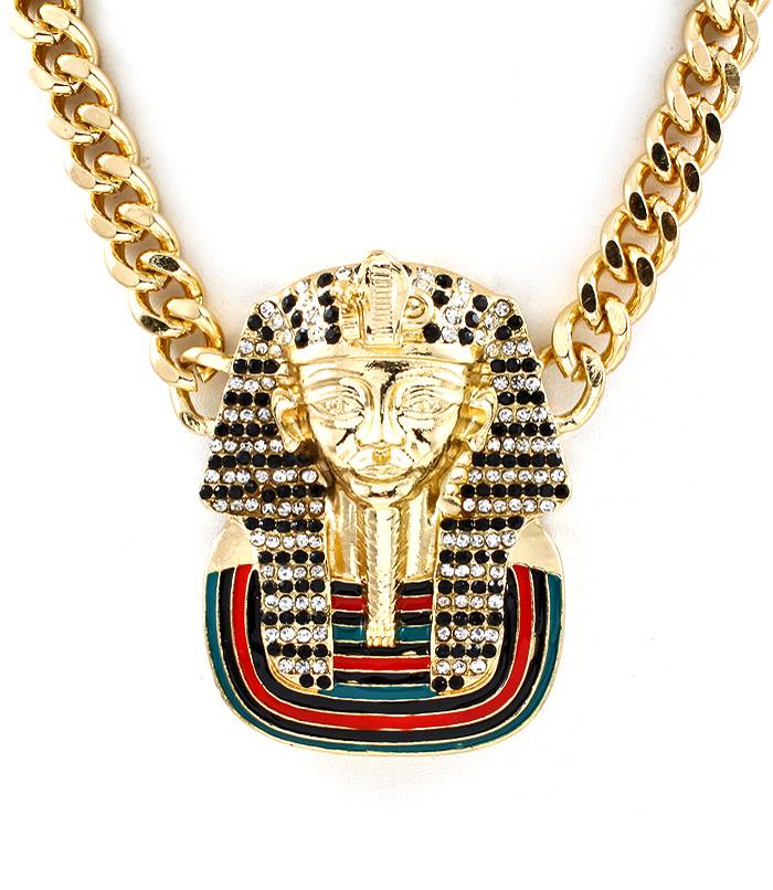 Big Gold Crystal Pharaoh Chain Necklace