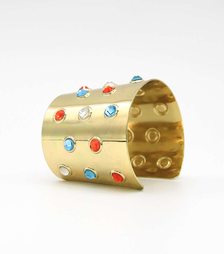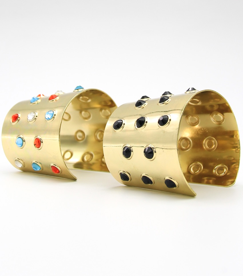 Gold Multi Color Crystal Studded Cuff Bracelet