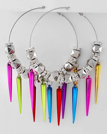 2pc Set Silver Crystal Rainbow Spike Hoop Earrings & Ring set