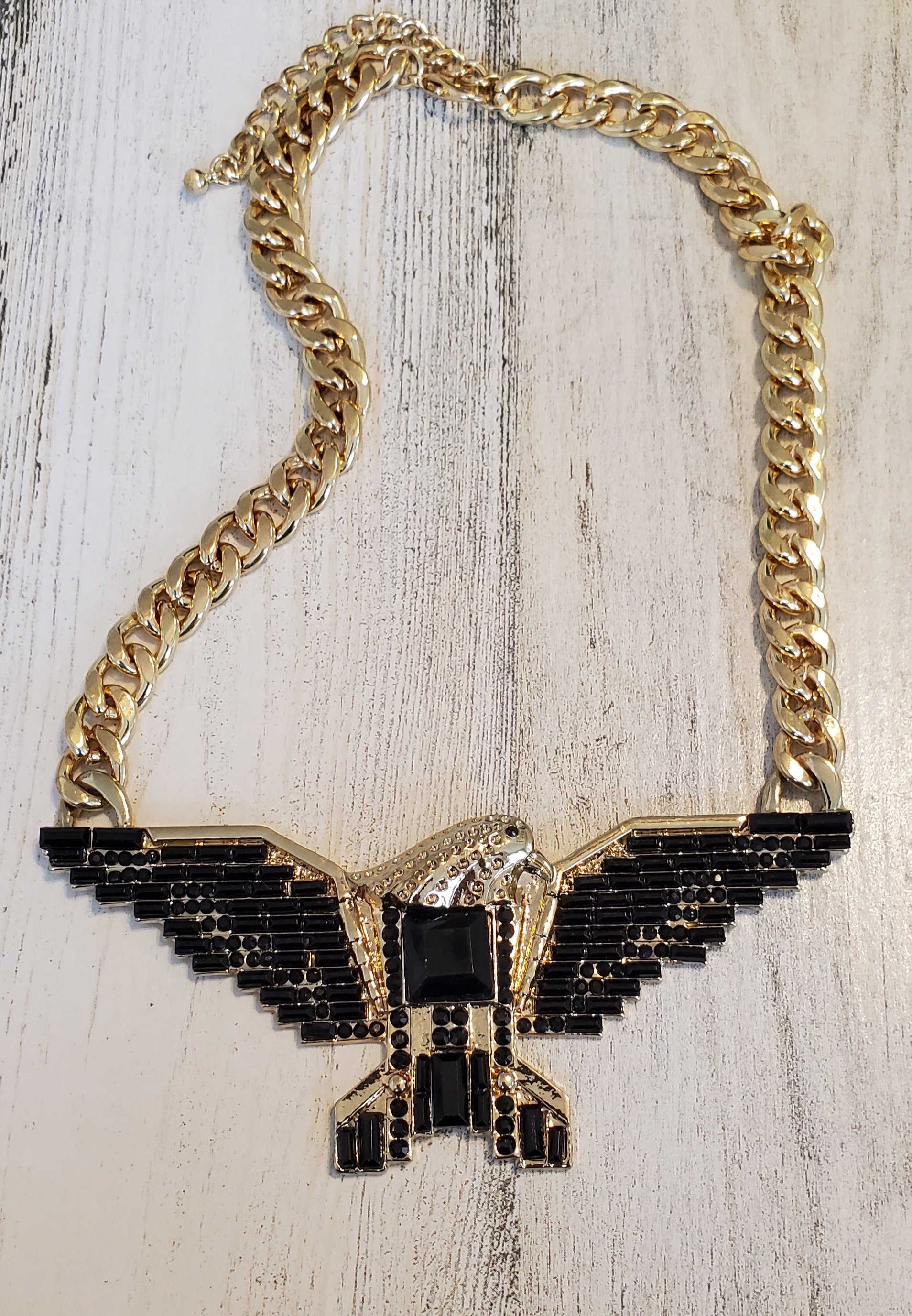 Vintage Black Crystal "Fly Like An Eagle" Necklace