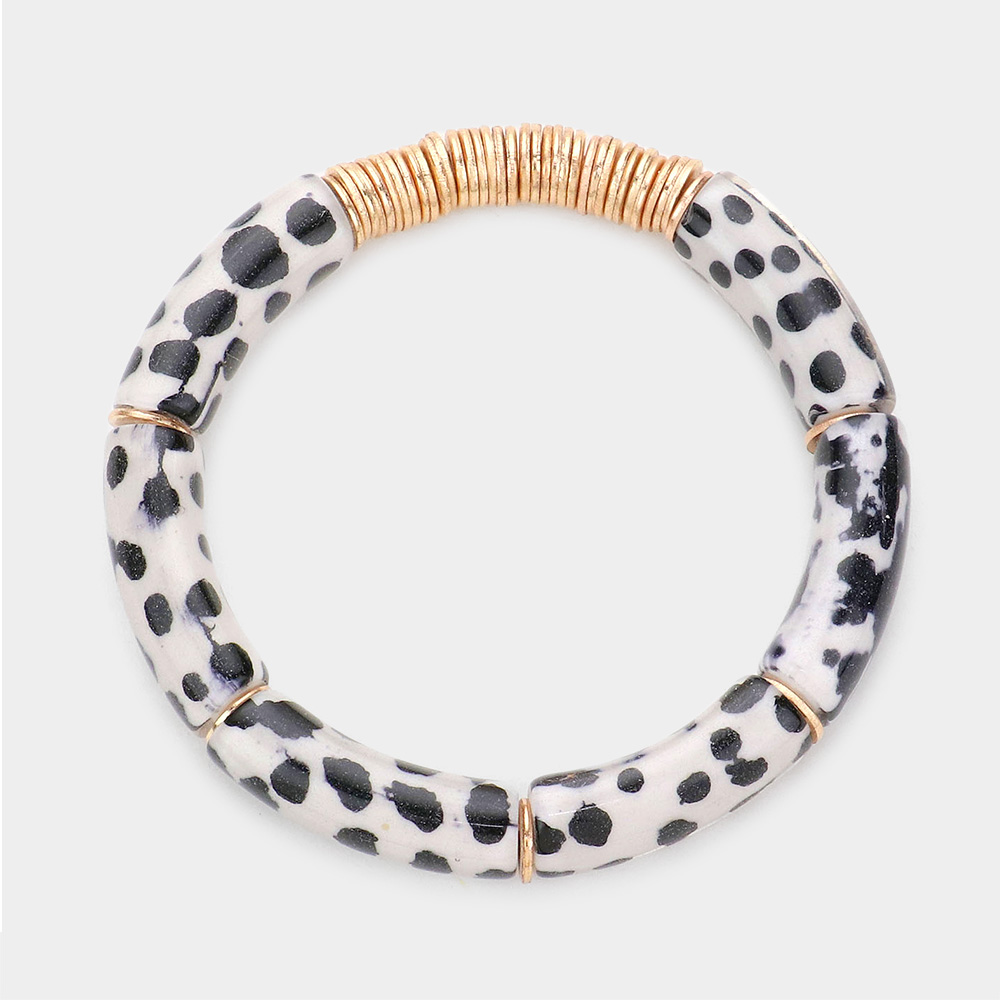 Gold Black & White Beaded Ring Stacking Bracelets